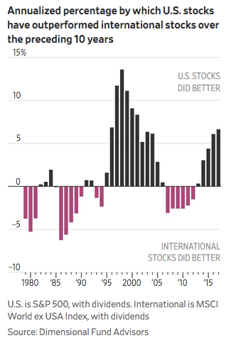 In Jason Zweig’s latest Wall Street Journal offering “The ‘Dumb’ Money Is Bailing on U.S. Stocks. That’s Smart.” he makes the case that “now more than ever, investors need to consider investing in overseas stock markets.”